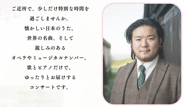 「濱野杜輝バリトンコンサート」のお知らせ 広報担当 23時間前 日時:2026年4月19日14:00開演 場所:ダイヤランド レストラン森の里 料金:全席4,000円(コーヒー・ケーキ付き) 詳細はこちら 20260419濱野杜輝バリトンコンサート